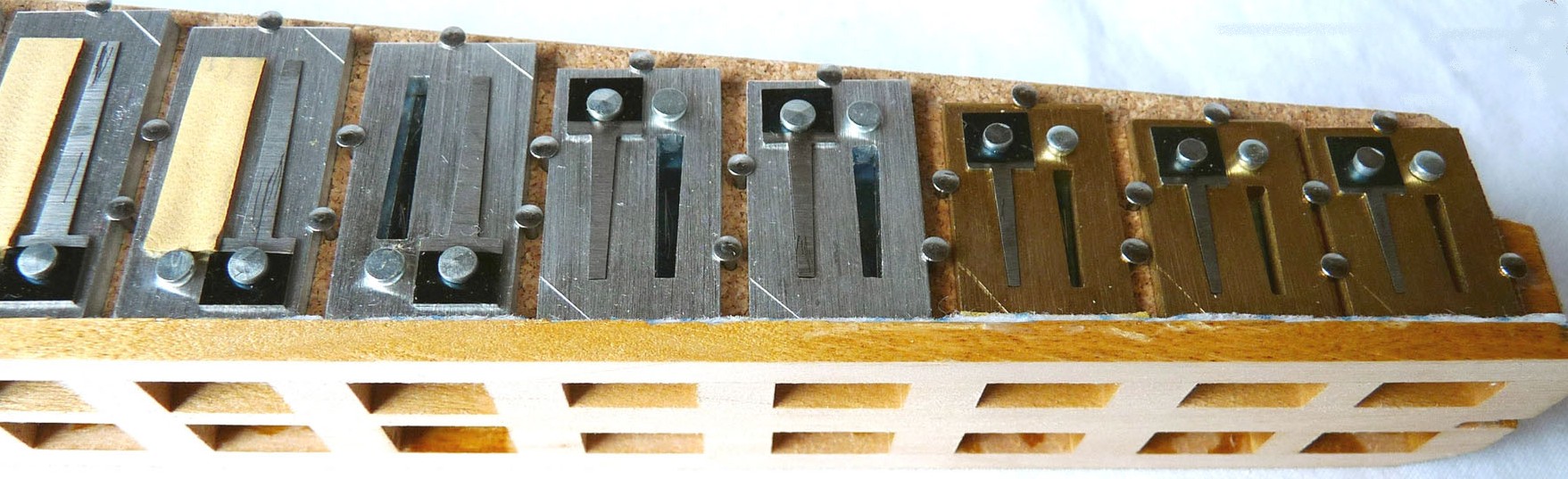 Un sommier d'accordéon Maugein. Base en aulne, musique clouée, peaux en cuir... la tradition corrézienne perpétuée !